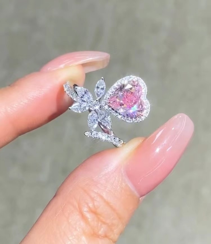 Schmuck Diamant Arbeitstage 7 Tage Pink Diamant Verlobungsring Hochzeitsring Herzgeschnitten