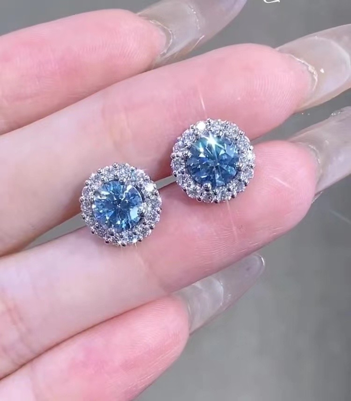 Labor Diamant Schmuck Blau rund geschnitten Verlobung Hochzeitsideen Fancy Diamant Stift Ohrringe